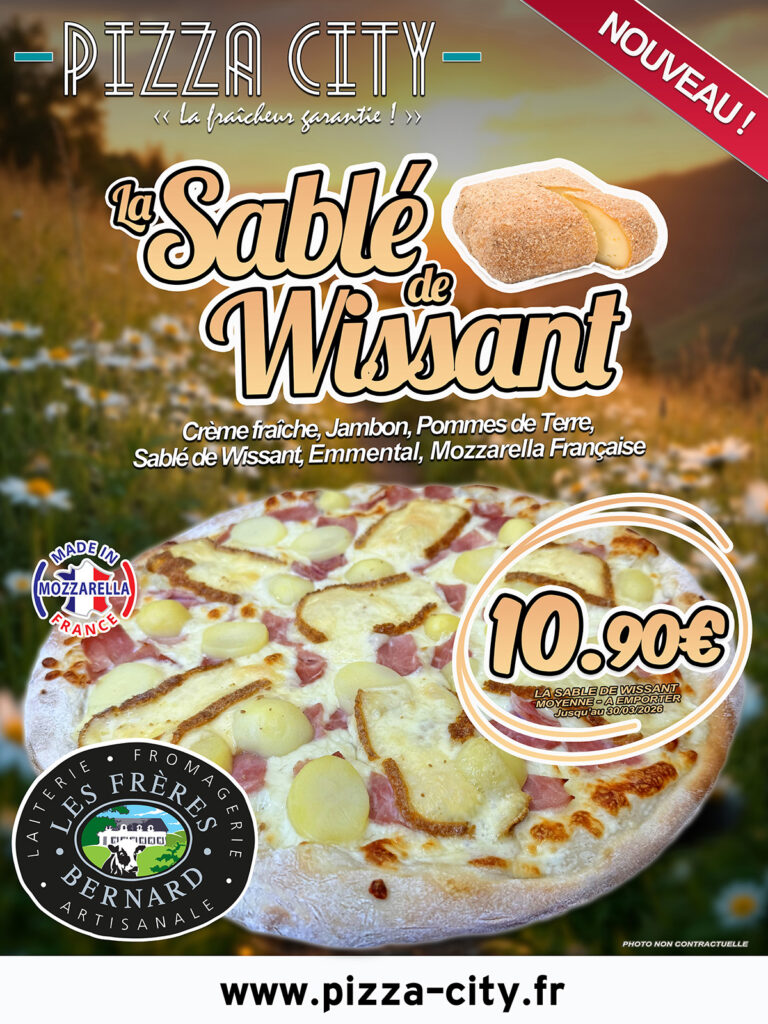 Crème Fraîche, Jambon, Pommes de terre, Sablé de Wissant, Emmental, Mozzarella Française