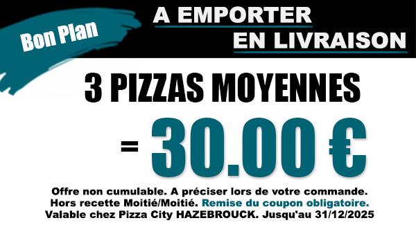 Sauce tomate, Haché au boeuf°, Sauce barbecue, Oignons, Tomates fraîches, Cheddar, Emmental, Mozzarella Française (version Bacon Burger’City disponible avec supplément Bacon°)